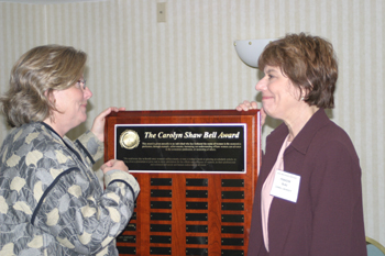 Dr. Robin L. Bartlett receives the 2003 Carolyn Bell Shaw award from Francine Blau.