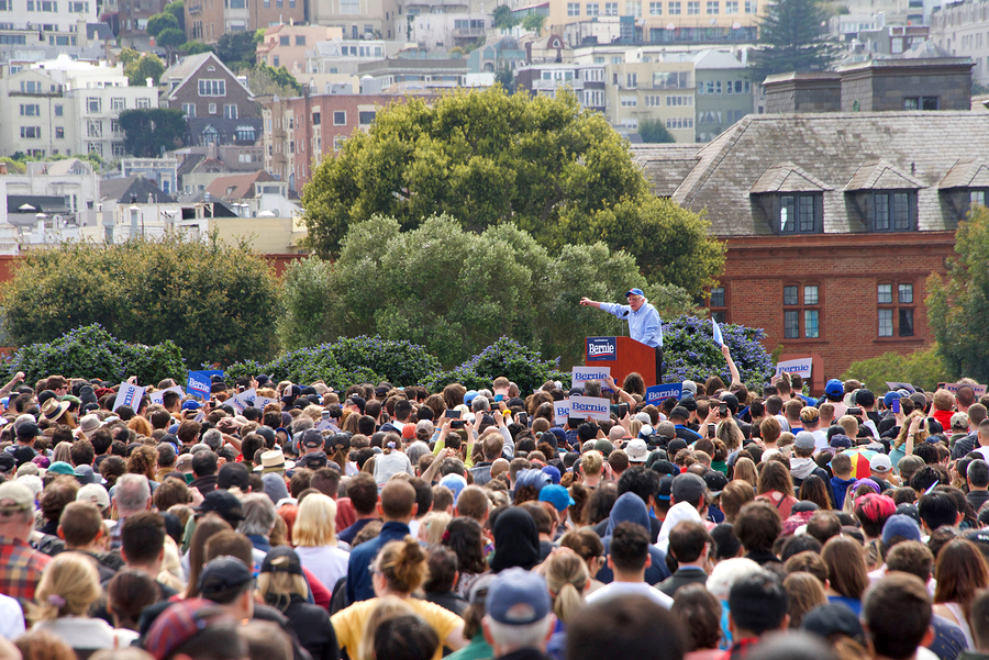Bernie Sanders campaigning in San Francisco. Included in his housing plan is a nationwide rent control.