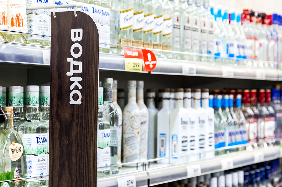 Shelves of vodka at The Hypermarket Karusel in Samara, Russia.
