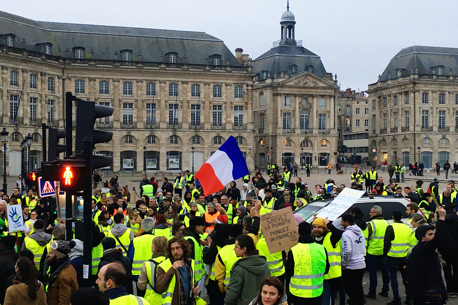 Yellow-vest protests erupted across France in 2018, ostensibly over a planned increase in the fuel tax.