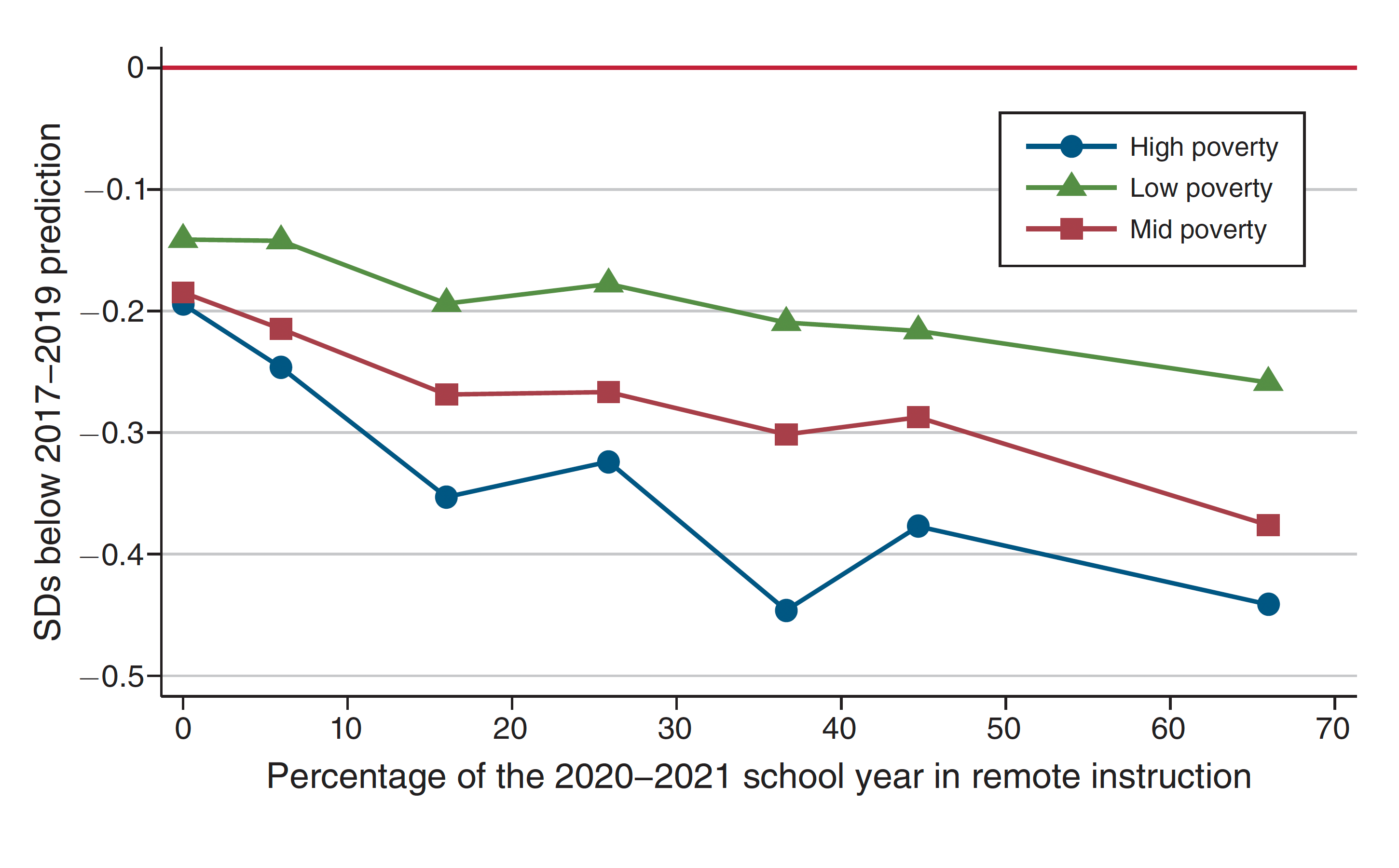 Researchers Dan Goldhaber, Thomas J. Kane, Andrew McEachin, Emily Morton, Tyler Patterson, and Douglas O. Staiger found that students who had more remote instruction during the pandemic improved their achievement from fall 2019 to fall 2021 much less than prior cohorts. Read more.