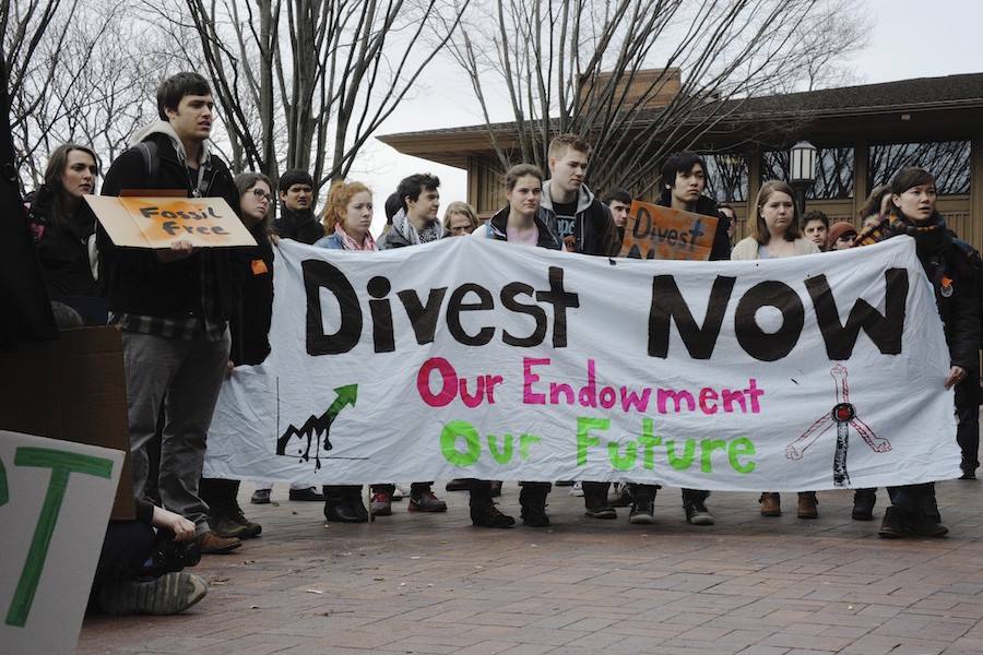Students at Tufts University "marched forth on March 4th" coinciding with dozens of student-led rallies around the United States. The marches had the objective of pressuring universities to reduce and eventually eliminate investments in fossil-fuel related ventures.