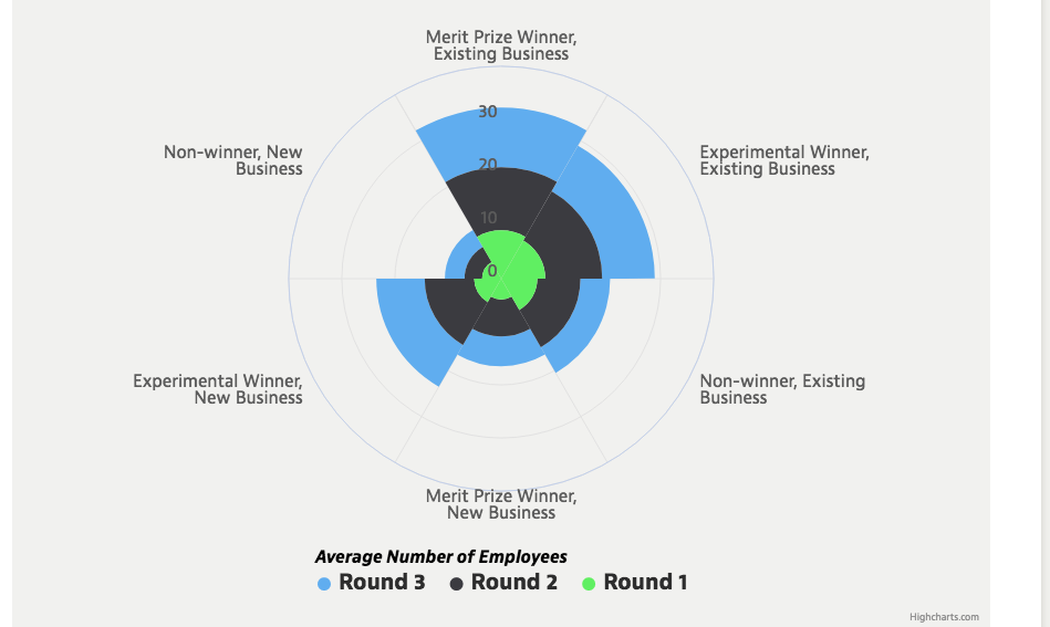 Applicants who won merit prizes and applicants who were randomly selected to receive a grant (experimental winners) increased their number of workers, thereby boosting Nigeria's job growth. This was true for entrepreneurs who wanted to expand their existing businesses as well as for those who developed new businesses.