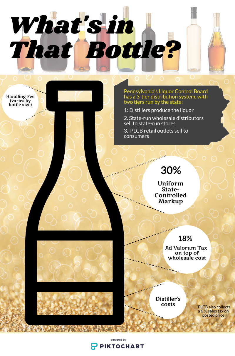 Walk into a Pennsylvania liquor store and you’d see hundreds of different spirits, from $200 bottles of scotch to a $6 fifth of vodka. And yet they’re all taxed the same, regardless of how prices affect demand among consumers. Someone in the market for an inexpensive bottle of Smirnoff may have different price sensitivity than a shopper browsing the top-shelf for Johnnie Walker Blue.