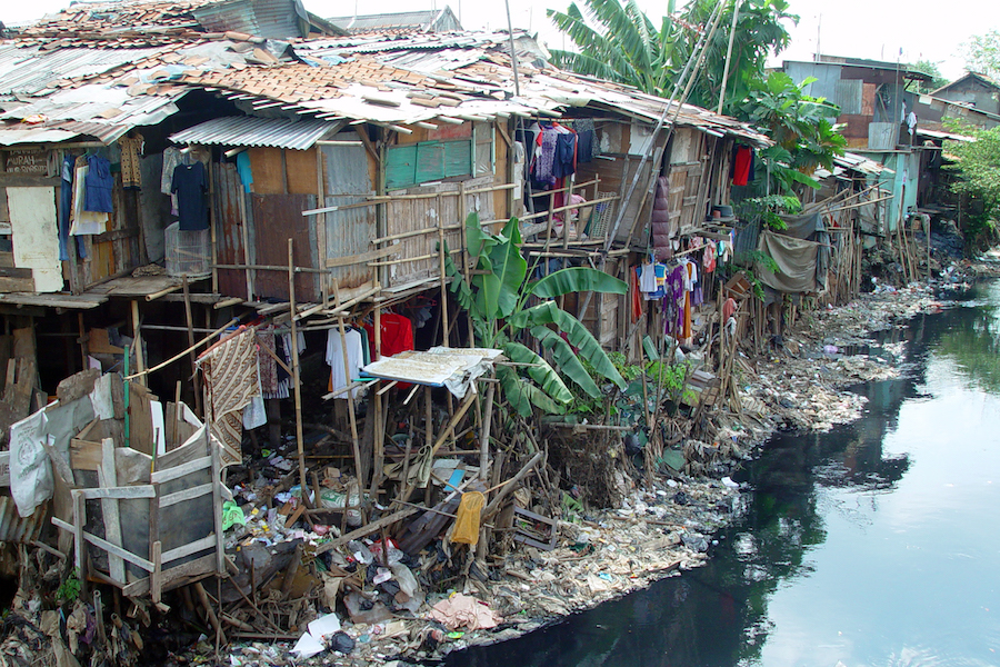 Slums built on swamp land near a garbage dump in Jakarta, Indonesia, in December 2003.